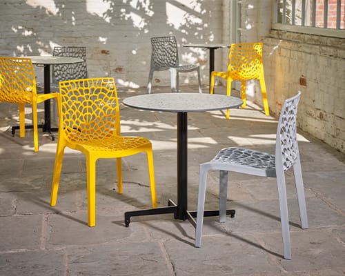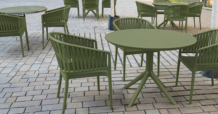 Explore our outdoor furniture collection at Nobis Restaurant Furniture, ideal for restaurants, cafés, and hotel terraces. Our chairs offer a perfect blend of style and durability, while our table tops and bases are designed to elevate any outdoor setting.